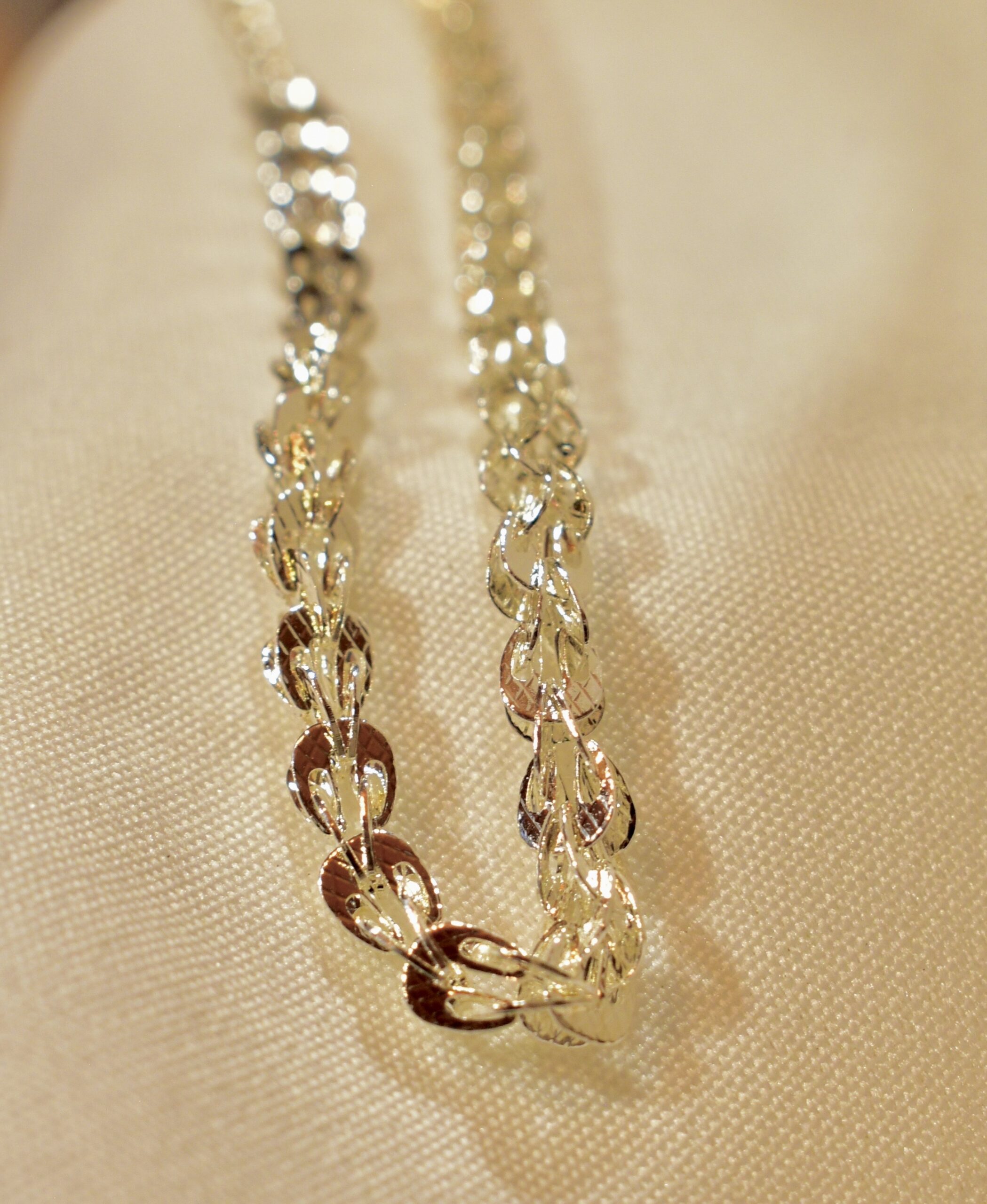 Con diseño exclusivo de eslabones entrelazados en forma ondulada.