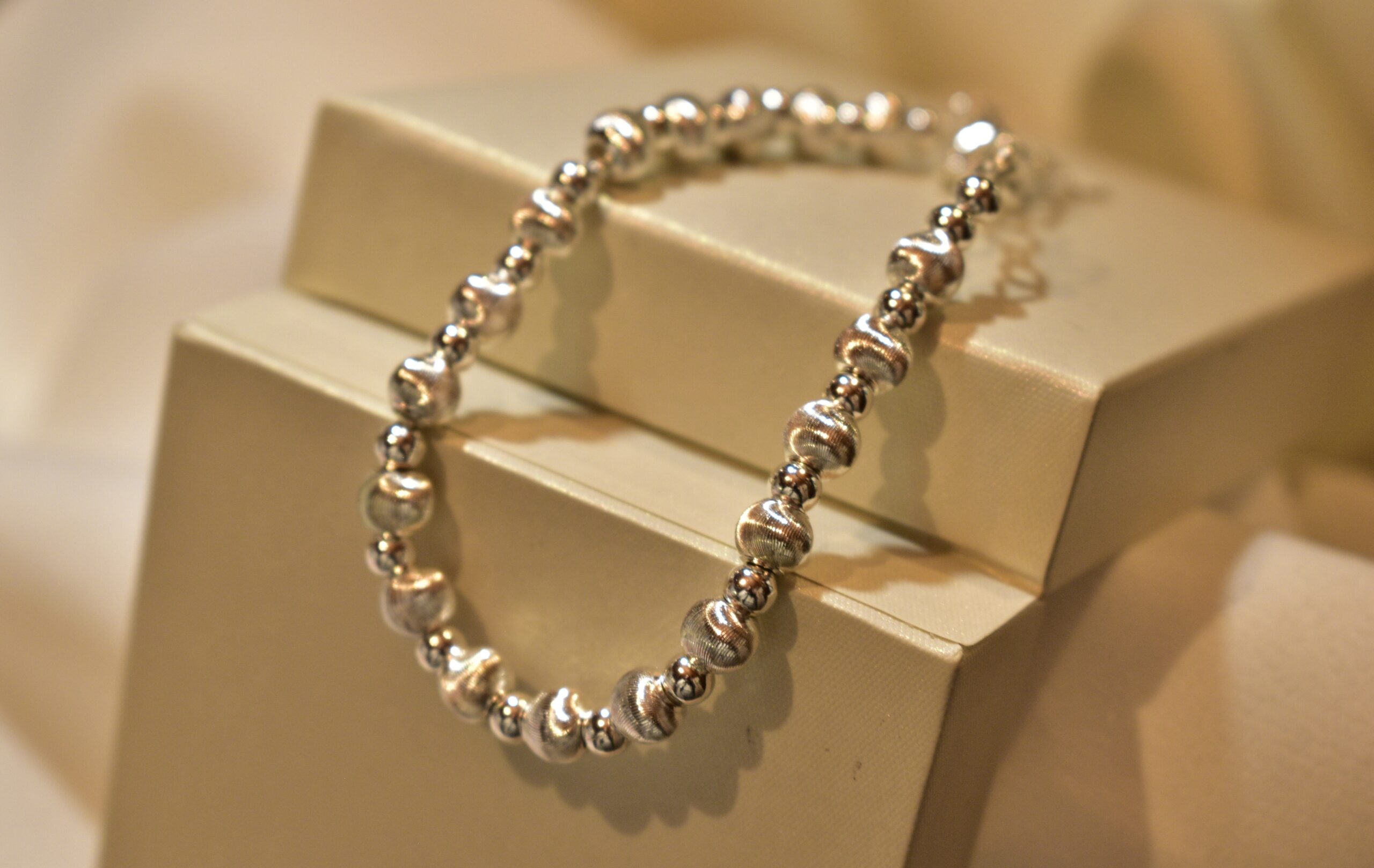 Pulsera de Plata 925 con esferas lisas y acanaladas